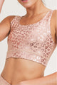 We put our best-selling animal print with our best-selling foil print and the result is this stunning pair of leggings. Constructed from a four-way stretch fabric, these leggings feature an all-over foil Leopard Shimmer print (a Mono B exclusive) set against a solid-colored background. 75% polyester, 25% spandex. Tummy control. Moisture-wicking. Four-way stretch. Made in China.