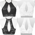 You don`t have to actually work out in order to rock this sports bra featuring a front mesh overlay and strappy back design perfect for showing off! • High neckline • Stretchy mesh overlay on front • Two removable pads for support & shaping • Strappy back detail • Moisture wicking fabric • Soft and stretchy • Perfect for working out or relaxing • Imported Composition: 92% Nylon, 8% Spandex